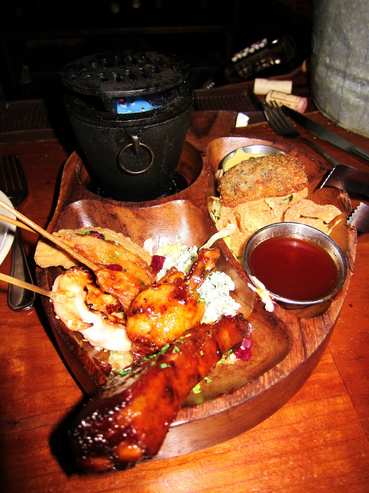 I had had the pu pu platter once before, but had imprudently rushed through it (one too many cavas, prior). It wasn't until Saturday night that I realized the best way to enjoy Blue Ribbon's pu pu platter is to slowly grill each item atop the hibachi grill until there's some blackening. This time around, I enjoyed the pu pu platter so much more.